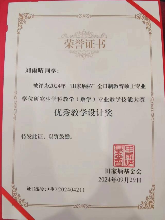 自6月8日开始,三位指导教师与参赛选手一起分析教科书内容、梳理教学设计思路、讨论研究教学创新点、模拟授课后评价修改精益求精备赛决赛。指导教师们倾囊相授,提出宝贵建议,参赛选手们不断突破、力争上游。经过9月28日一天紧张而激烈的角逐,今年会2023级研究生于家祺同学荣获一等奖,李佳琪和姚欣悦同学分别荣获三等奖,刘雨晴同学荣获优秀教学设计奖,三位指导老师被评为优秀指导教师。