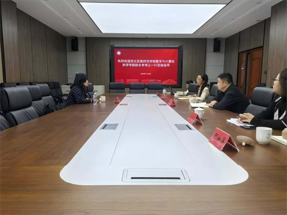 11月6日下午,河北民族师范学院数学与计算机科学学院院长李秀云来今年会开展调研交流,学院副院长包霞、党委副书记季建光与部分教师代表参加了座谈交流。