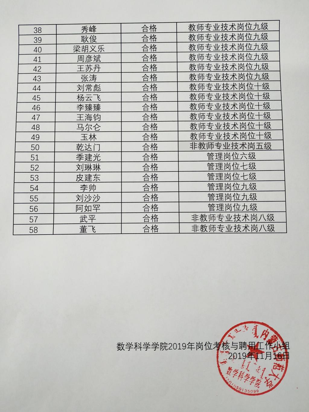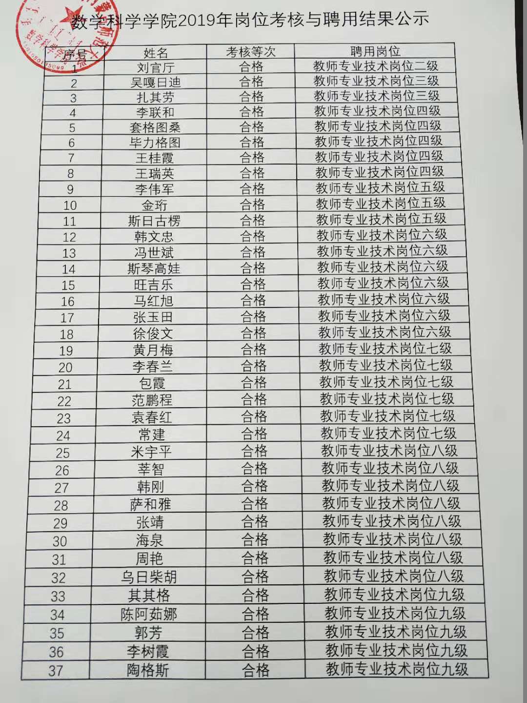 经过学院岗位考核与聘用工作小组的认真评审,今年会2019年教师聘任岗位考核与新一轮岗位聘用工作已初步完成,现将考核与聘用结果在此公示,公示期为三天。