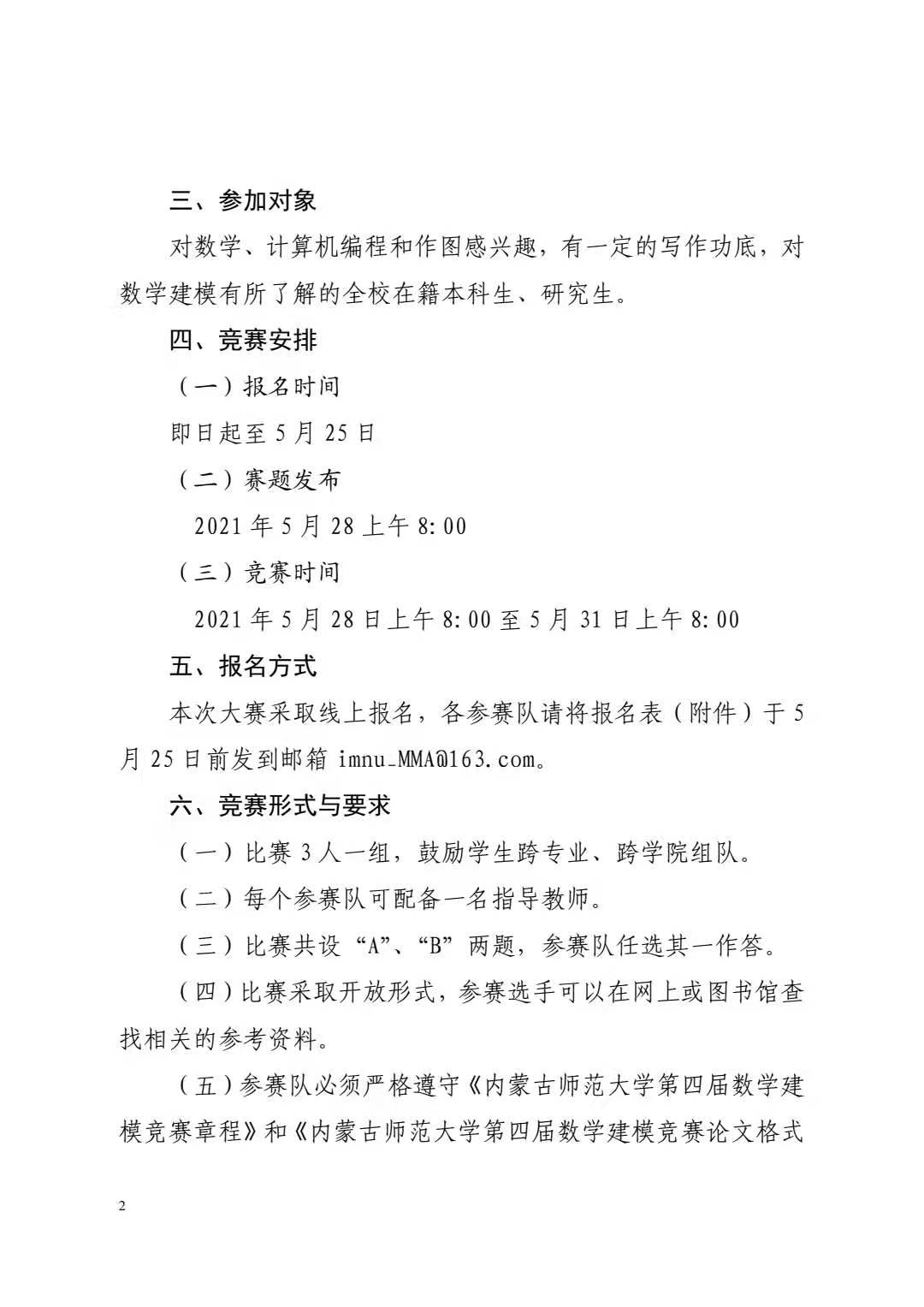 关于举办第四届数学建模竞赛的通知