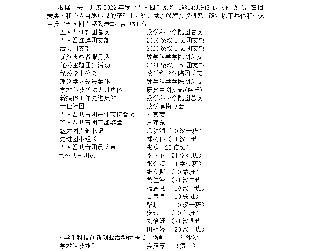今年会2022年度“五·四”系列表彰推荐名单公示