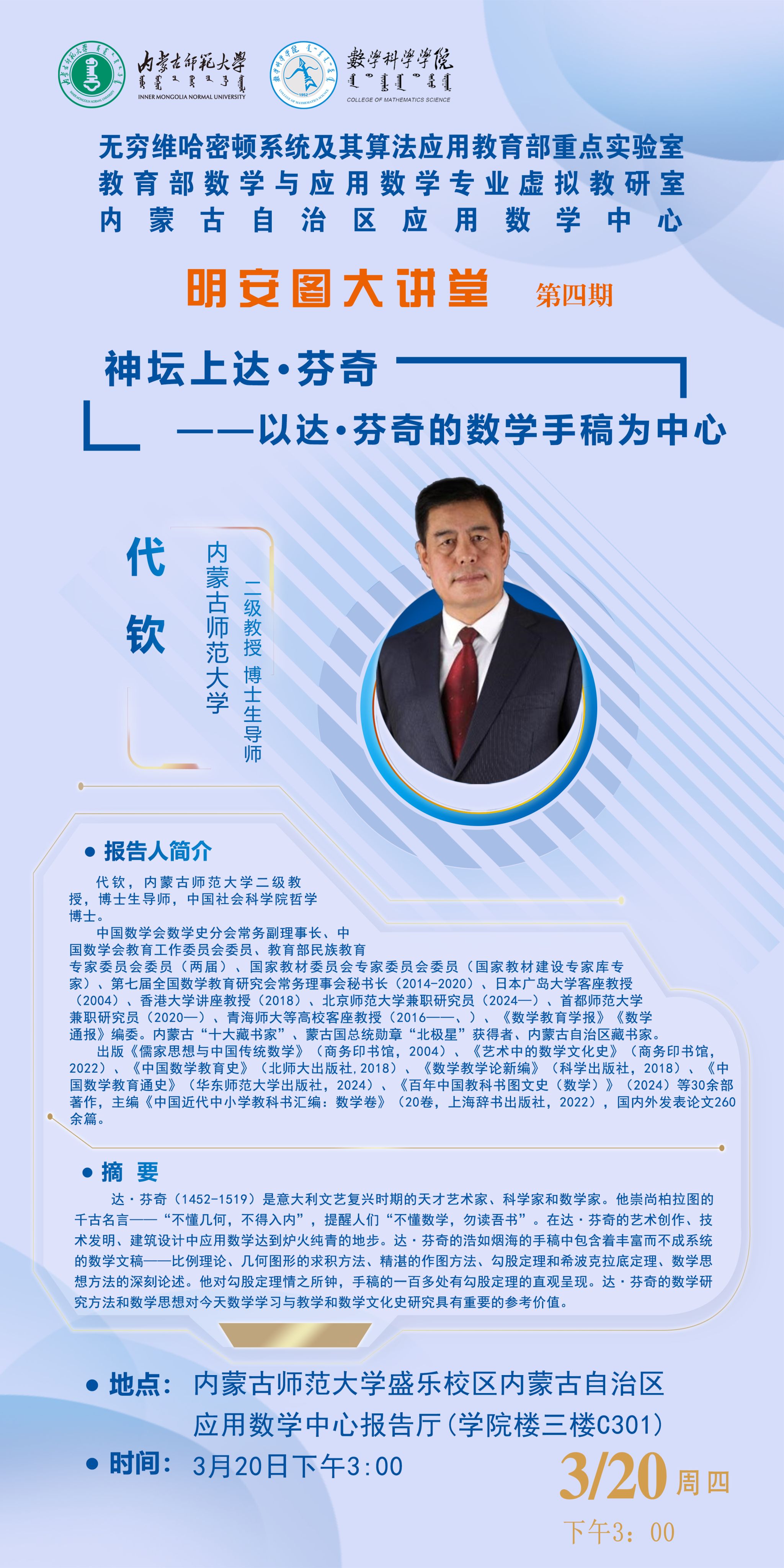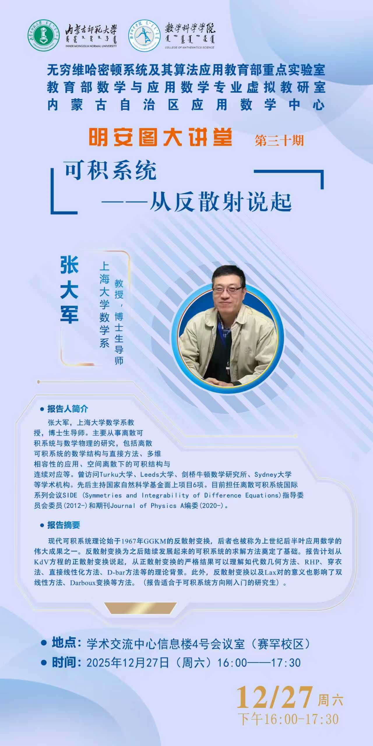 明安图大讲堂·预告(第三十一期) | Applied Mathematics:Current and Future