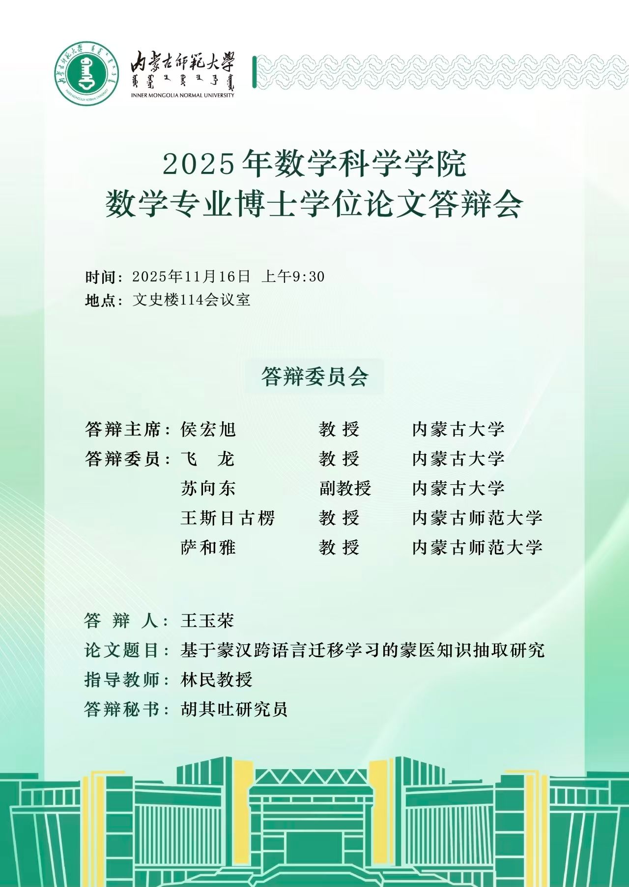 2025年今年会数学专业博士学位论文答辩会(一)