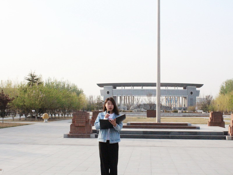 国旗高高飘扬,广场上,磅礴的音乐响起,演奏出耳熟能详的旋律,全体师生合唱《我和我的祖国》,嘹亮悠扬的歌声响彻了整个河工校园。当红旗飘飘与灿烂笑脸辉映,歌声琅琅与春天和风共鸣,整个校园成了一个欢腾的海洋,将本次活动推向高潮。