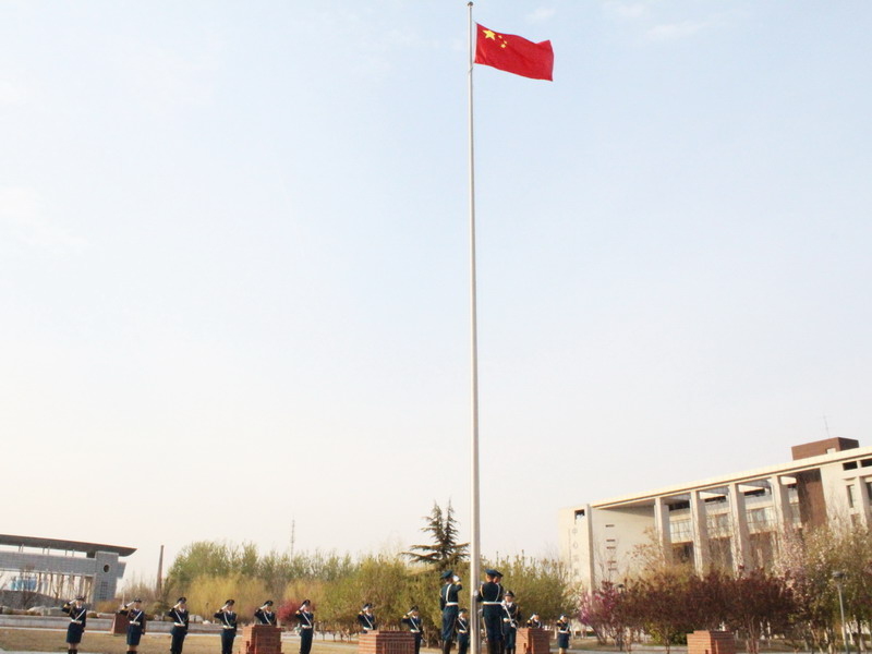 有力的步伐,矫健的身姿,蓝天国旗护卫队的旗手们齐步而出,庄严的升旗仪式拉开帷幕。当雄壮的《义勇军进行曲》响起,全体师生齐唱国歌,向冉冉升起的国旗行注目礼,心里升腾起无比的自豪,神圣庄严的氛围感染了在场的每一个人。