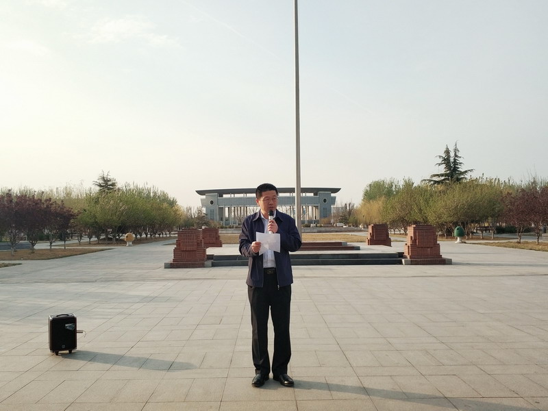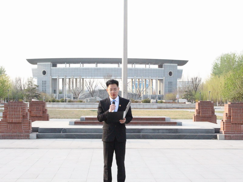 奏唱完毕后,73882必赢最新官网党委书记许长勇老师在国旗下做了“不忘初心 牢记使命 全面推进党建标杆学院建设”的精彩讲话。许老师表示,经管学院刚刚入选河北省党建工作标杆学院建设序列,这是学院党委的荣誉,更是沉甸甸的责任。他强调,全体党员要充分发挥先锋模范作用,扎实推进学院的各项工作,共同建设73882必赢最新官网新辉煌。