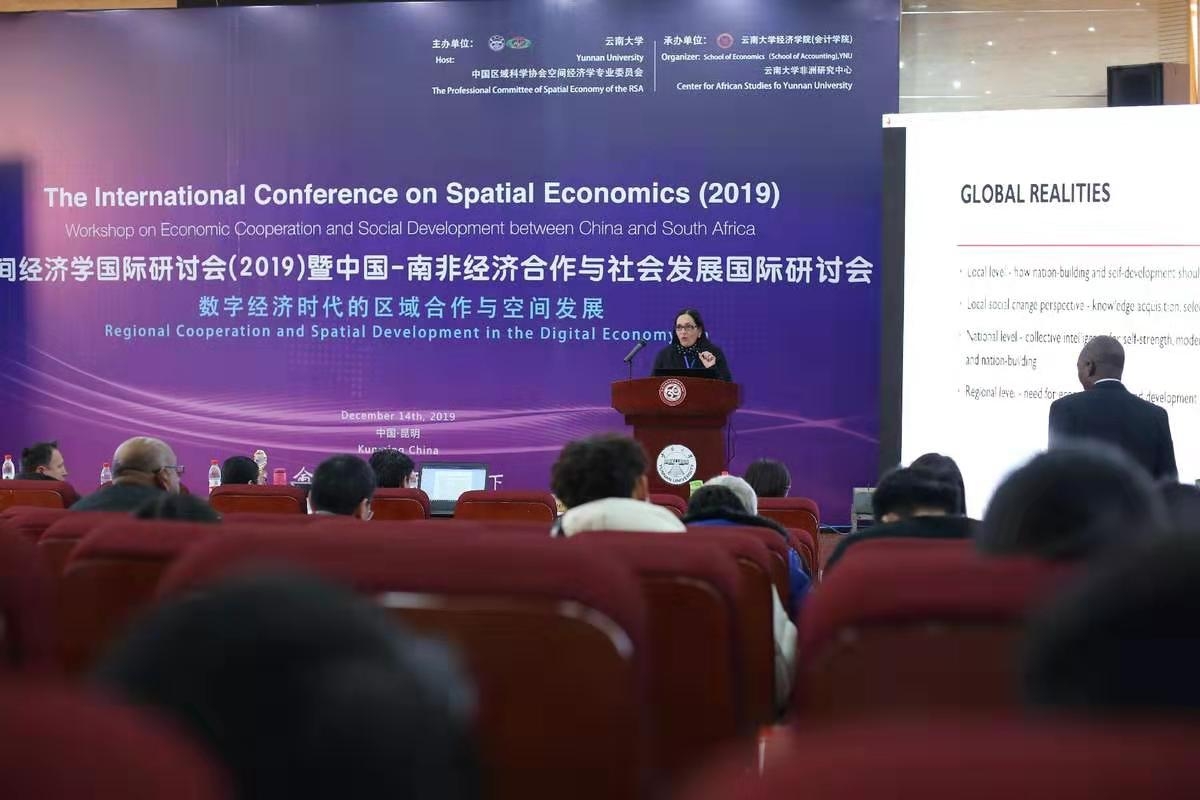 2019年12月14日,由云南大学和中国区域科学协会空间经济学专业委员会联合主办、云南大学经济学院(会计学院)和云南大学非洲研究中心联合承办的“空间经济学国际研讨会(2019)暨中国-南非经济合作与社会发展国际研讨会”在云南大学经济学院报告厅隆重召开。大会由云南大学经济学院院长、空间经济学专业委员会副主任兼秘书长梁双陆研究员主持,云南大学社科处处长杨绍军致欢迎辞,中国区域科学协会副会长、空间经济学专业委员会主任委员、中山大学管理学院梁琦教授致开幕辞,空间经济学专业委员会副主任委员、哈尔滨工业大学数学学院田波平教授作大会总结。